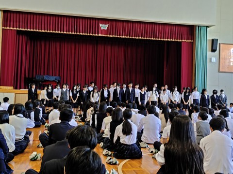生徒会室役員や学級代表など、後期の各種委員会の認証がありました。