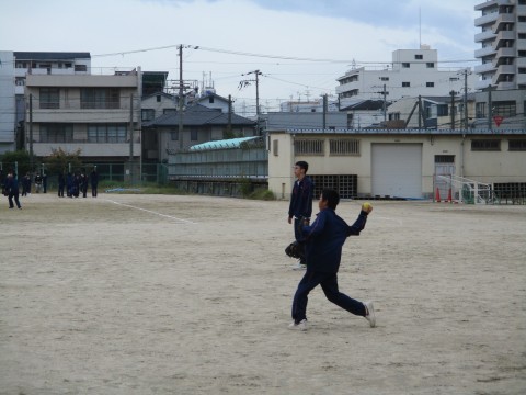 体育授業、ソフトボールです。