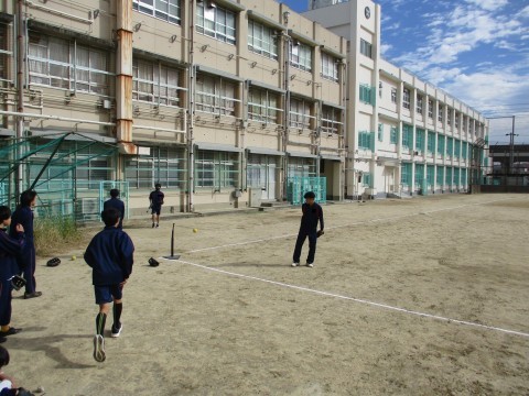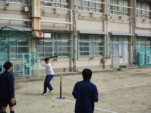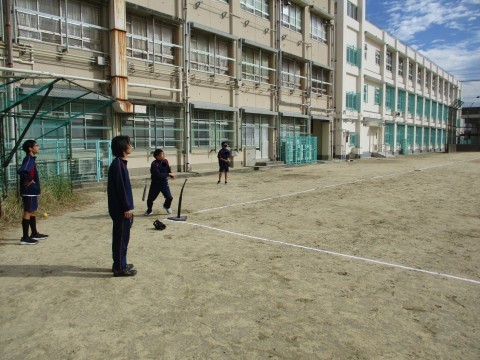 体育授業、ソフトボールです。皆さん上手で迫力です。