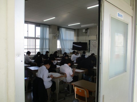 テスト開始前に最終の確認をしているようです。日ごろの学習の成果を発揮してください。
