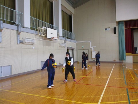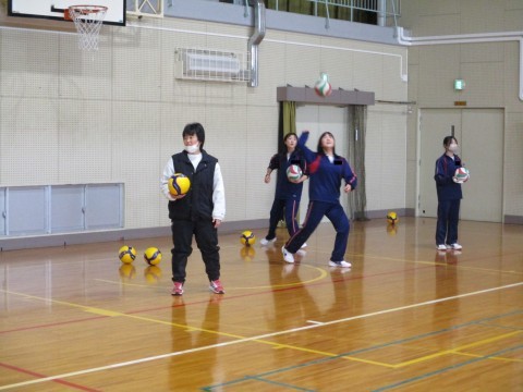 先生からしっかりとコツを教わってサーブの練習をしていました。