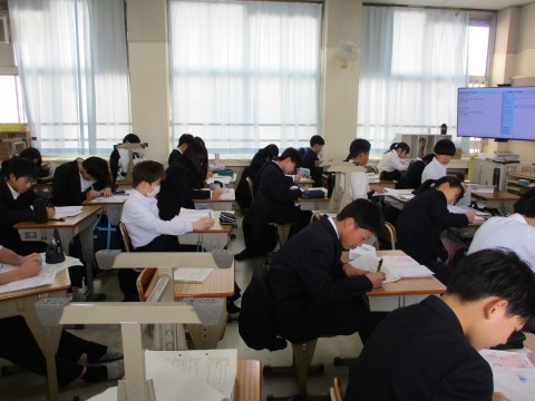友達と協力したり、教科書を見て、テストに備えてしっかりと学習中です。