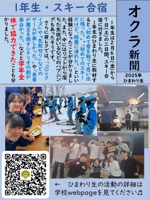 1年生に取材をして,3年生がオクラ新聞にスキー合宿のことをまとめました。ぜひご覧ください。