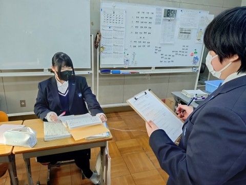 友達と協力したり、教科書を見て、テストに備えてしっかりと学習中です。