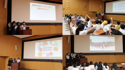 授業体験と部活動体験の間には、生徒会執行部から陵西中学校の紹介とクイズもありました。