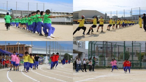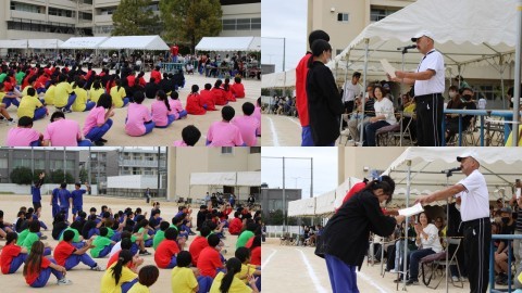 中学生と小学6年生がともに力をあわせ、校区全体で体育大会を盛りあげることができました。