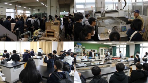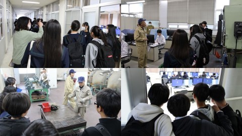 堺高校には、サイエンス・機械・マネジメント・建築など、さまざまな学科があり、生徒たちは実習を中心に見学させていただきました。