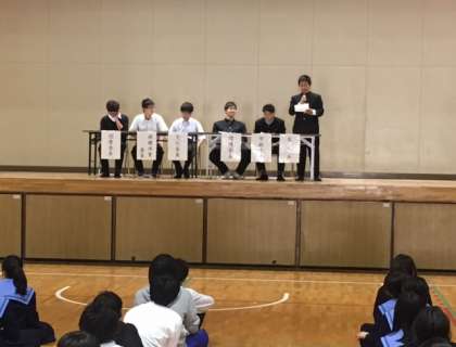 つづいて前期生徒会各種委員から活動方針の報告会が行われました。生徒会長と各種委員の委員長から具体的な取り組みが発表され、生徒のみんなからも温かい拍手が送られました。これからの活発な活動を期待します。