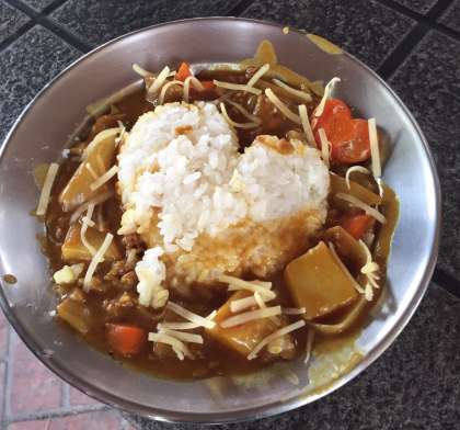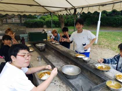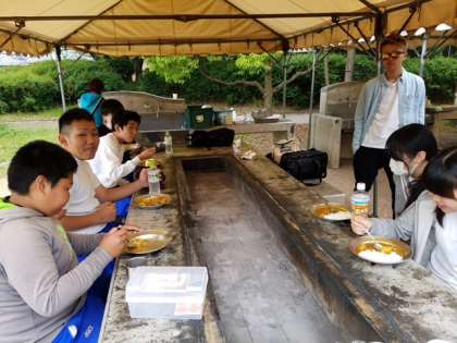 今回のカレー作りは、班で色々な隠し味やデコレーションを工夫したコンテスト形式となっています。