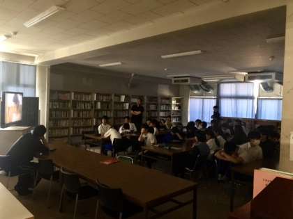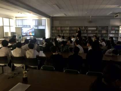 2年生は、1時間目教室で、2時間目は図書室で人種差別に関する映像を見て人権学習に取り組みました。