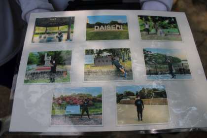 まず、オリエンテーリングでは、見本の写真をヒントに協力して園内のフォトスポットを探し出し、同じ人数・ポーズ・角度・距離も意識して生徒用PCで撮影します。