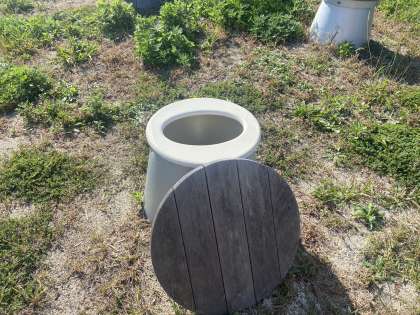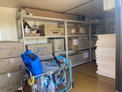 実際の防災倉庫と災害用トイレになるベンチを見せていただきました。