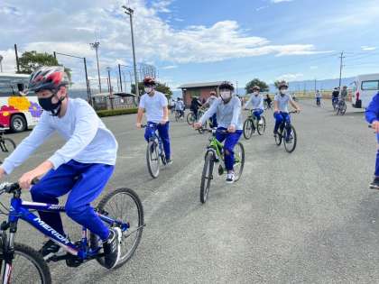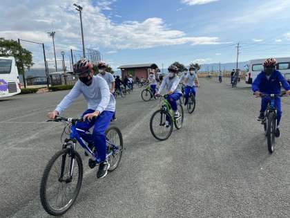 しっかりヘルメットをかぶって、マウンテンバイクもスタートです。