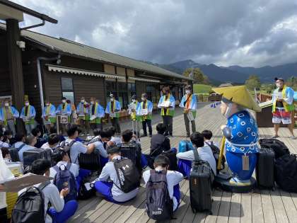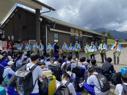 道の駅“あそ望の郷くぎの“にて、生徒を受け入れてくださる家庭の方々と合流しました。明日の朝まで、よろしくお願いします。