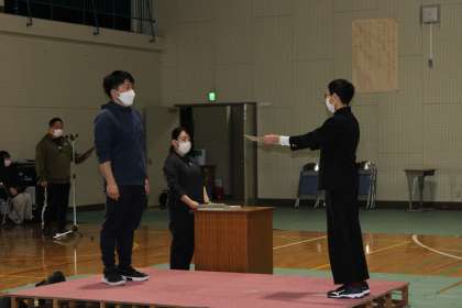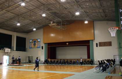 まずは、卒業式に向けて学年主任の先生からお話があり、証書の受け取り方や動線の確認をしました。