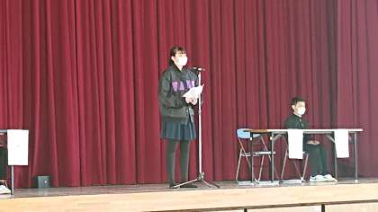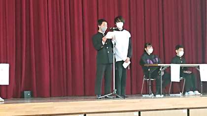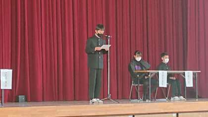 4時間め、体育館におきまして「後期委員会の活動報告」を行いました。