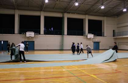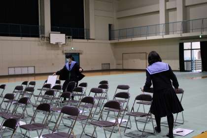 3・4時間目の「防犯教室」に向けて、朝早くから有志生徒のみなさんが会場の準備に来てくれました。上原先生指示のもと、テキパキ動いて準備をしてくれました。どうもありがとうございました。
