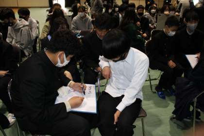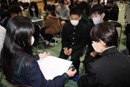 SNS(LINEグループ)でのトラブルについて動画を見た後、何がいけなかったのか・どうすれば良かったのか等について、グループワークを行いました。
