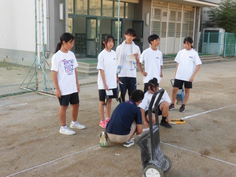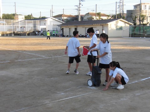 陸上部は体育大会のトラックがグラウンドの中のちょうどいい場所になるように計測しながら、ラインを引いてくれていました。