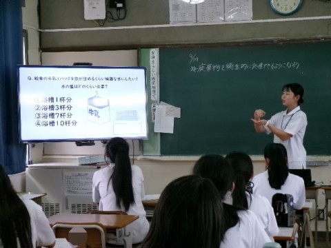 今日は保健で、廃棄物の適切な処理の仕方についてでした。