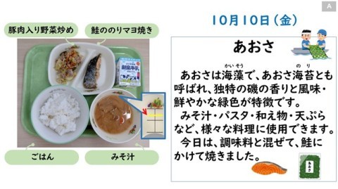 今日は、あおさ粉とマヨネーズ風ドレッシングをかけてのりマヨ焼きにしていただきました。