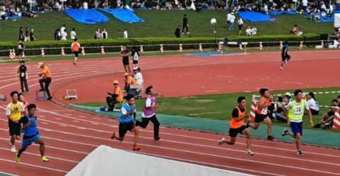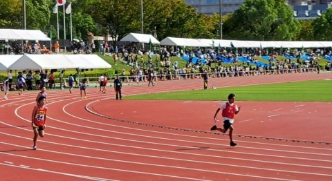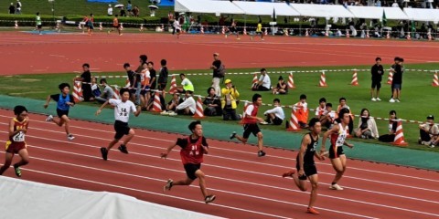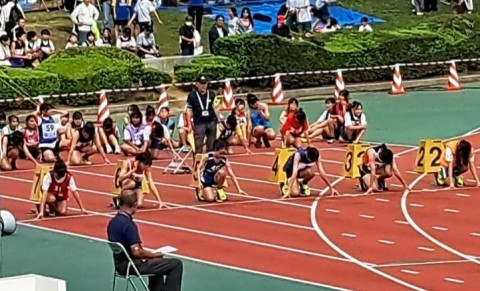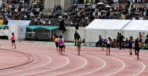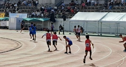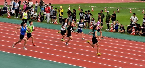 昨日、金岡競技場で市民オリンピックが開催され、本校からも12名の陸上部の生徒が各小学校区を代表して100m走と小中合同のリレーに参加しました。