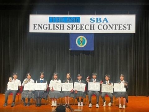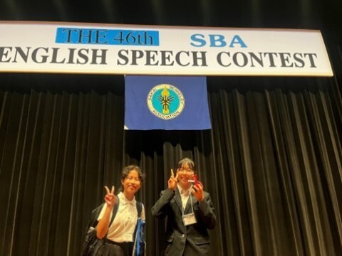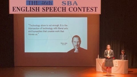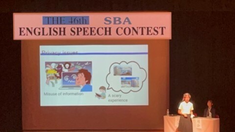 3年生の内田さんと柿木さんが堺市中学生英語弁論大会に出場し、スライドを使った発表を行い、内田さんは6位に入賞しました。