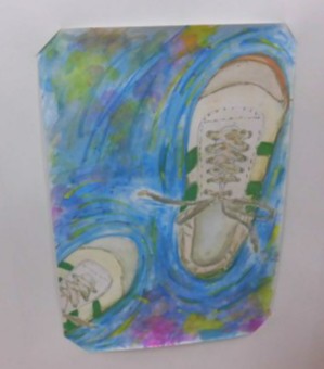 各学年より1作品ずつ選ばれた「堺市第62回幼小中美術展」に出品する作品です。美術の授業中に制作された作品ばかりです。