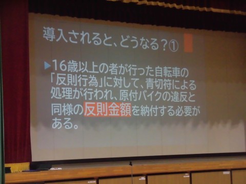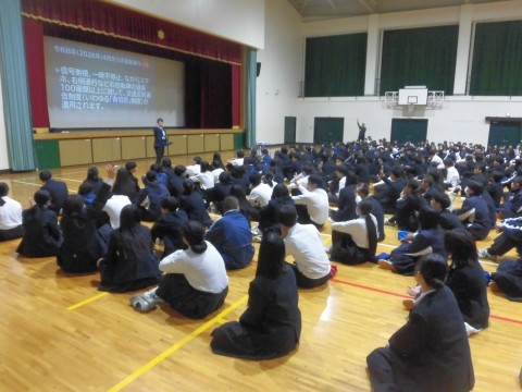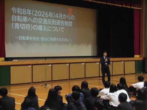 来年度の春から導入される交通反則通告制度(青切符)について生徒指導主事の先生からお話がありました。