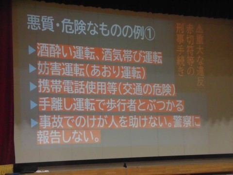3年生は来年度誕生日が来たら16歳、1・2年生も順々に。今のうちからきちんと知って、正しく乗ろう、というお話でした。