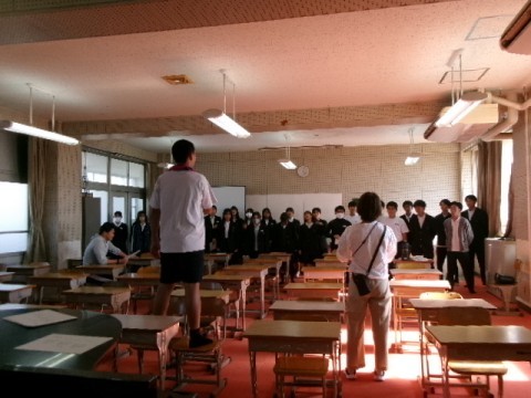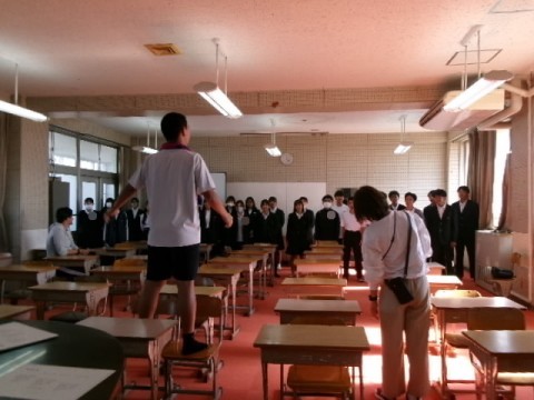 連合音楽会にむけて、3年生の生徒がお昼休みに歌の練習をしています。