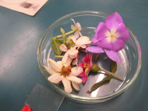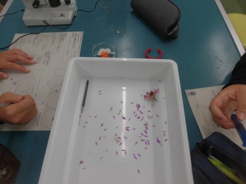 理科の先生が何か月も前から観察用に育てた、メイドイン旭中学校の花でした。