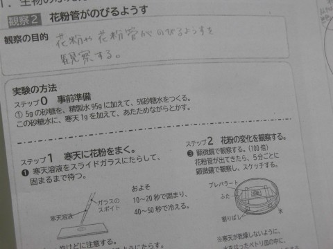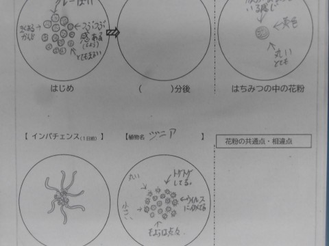 3年生も昨日の6時間目に花粉の観察実験を行っていました。