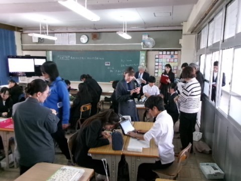 3年生の英語で公開授業を行い、堺市内の小中学校の先生方が来校されました。