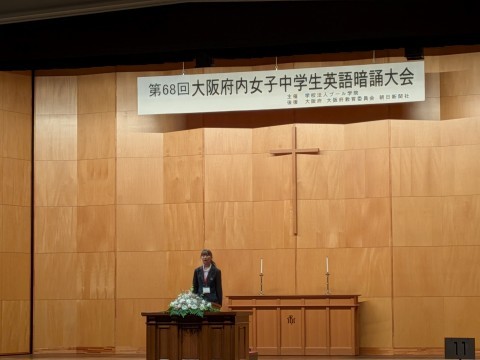 1115()プール学院高等学校・中学校にて第68回大阪府内女子中学生英語暗誦大会が行われ、本校1年生1名が英語暗唱に挑みました。