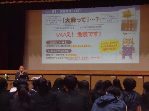 学校外から講師さんに来ていただいて、5時間目に薬物乱用防止教室を行いました。終わってから教えていただいたワードを話している人の姿がありました。「ダメ、絶対」ですね!