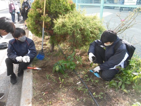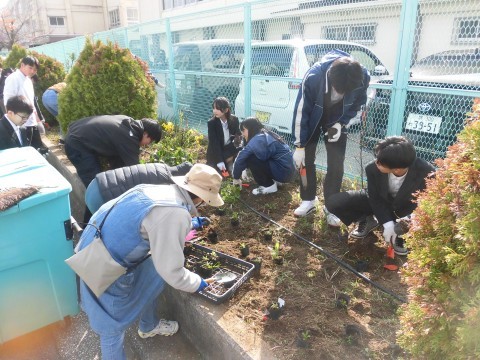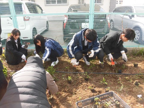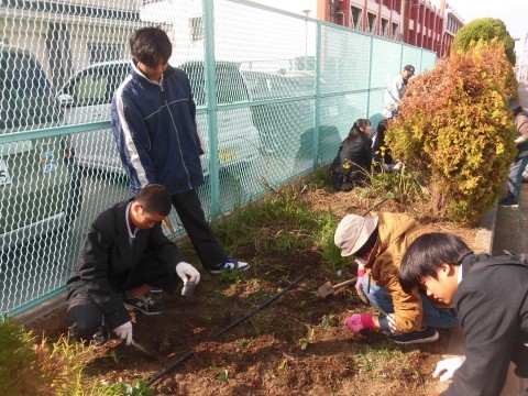 生徒の中にも「花植えのベテラン」が居て、みんな、積極的に活動を行っていました!