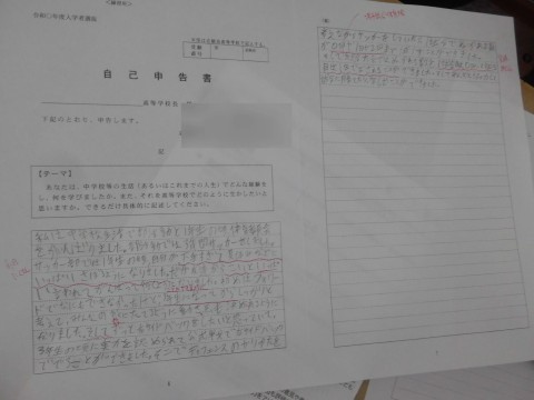 公立高校入試の自己申告書の作成に取り組んでいました。