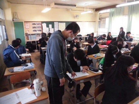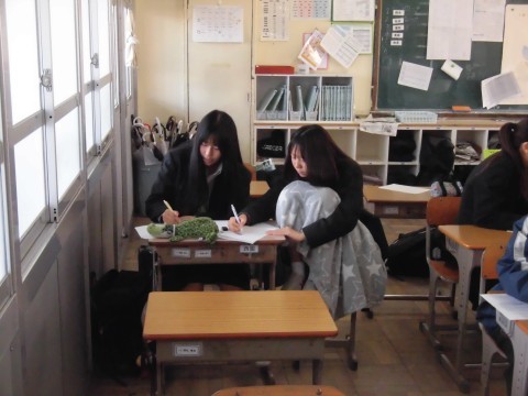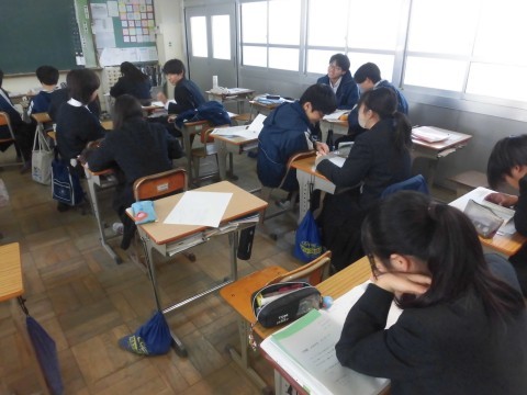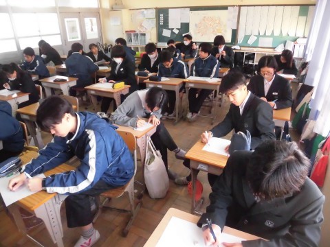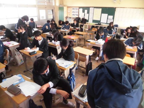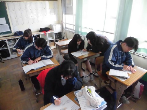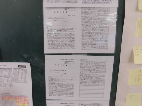 教室には、卒業生の自己申告書見本や進路関係の掲示が増えてきています。