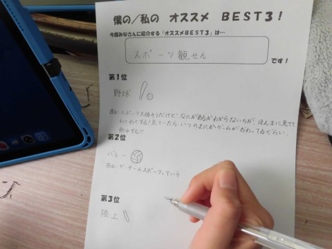 全クラス「なんでもベスト3」を考えて、その後は各クラスそれぞれの取り組みをしていました。