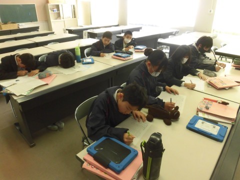 授業の内容が終わり、“宿題やってもいいよtime”。一生懸命、書いていました。