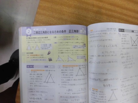 少し前まで行っていた「合同」の学習を経て、「二等辺三角形になるための条件」の学習をしていました。