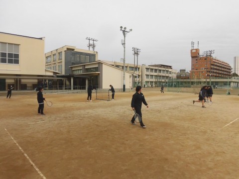 女子はソフトテニス。本格的に打ち合う人、他のラケット競技(卓球)をやっていていろいろ挑戦する人、ワイワイしながら打っている人、それぞれみんな楽しそうでした。