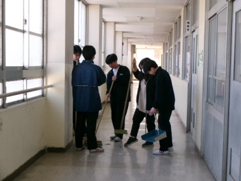 1年間お世話になった思い出の場所を、丁寧に一生懸命掃除していました。