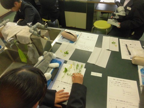 1年生の理科では押し花つくりと称して野草観察し、押し花を作りをしています。