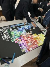 先週の最終授業。個人で作った作品をつなげて、各クラスの“つながる模様”の作成風景...