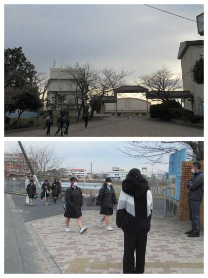 本日の朝の登校風景です。本日は風は強くはありませんが、気温が低く、寒さを感じる気候となっています。休み明けではありますが「おはようございます!」と、元気に挨拶してくれました。また、3年生の多くは私立高校の受検が終わって最初の登校日です。受験のことなどを話していました。本日もよろしくお願いいたします。