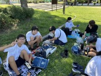本日も朝の水やりを行いました。みんなで植えたひまわりはぐんぐん成長し、腰より高い位置まで伸びています。暑さがまだまだ続くので、こまめに水やりをしてお世話していきましょう。