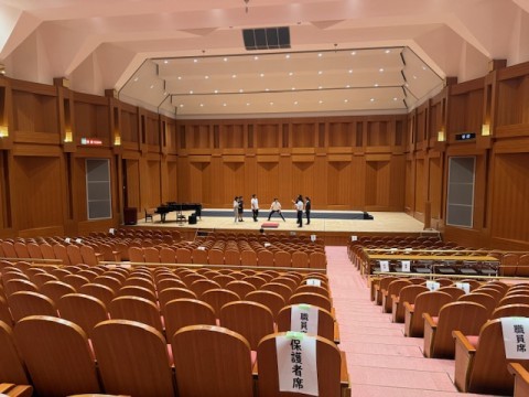 いよいよ、明日が本番となりました。前日準備として、合唱コンクールの会場となるウエスティにて現場確認と打ち合わせを行いました。ステージが出来上がり、最高の舞台となっております。子どもたちが一生懸命に歌う姿を是非見ていただけたら幸いです!応援よろしくお願いいたします!