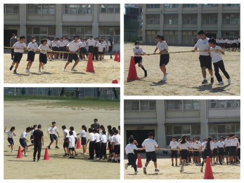 本日の1年生の保健体育の授業です。テーマは体育大会の時のプログラムである学年種目「台風の目」でした。クラス対抗で,チームで声を掛け合いながら行います。クラスが一致団結して,楽しく練習していました!当日は応援,どうぞよろしくお願いいたします!